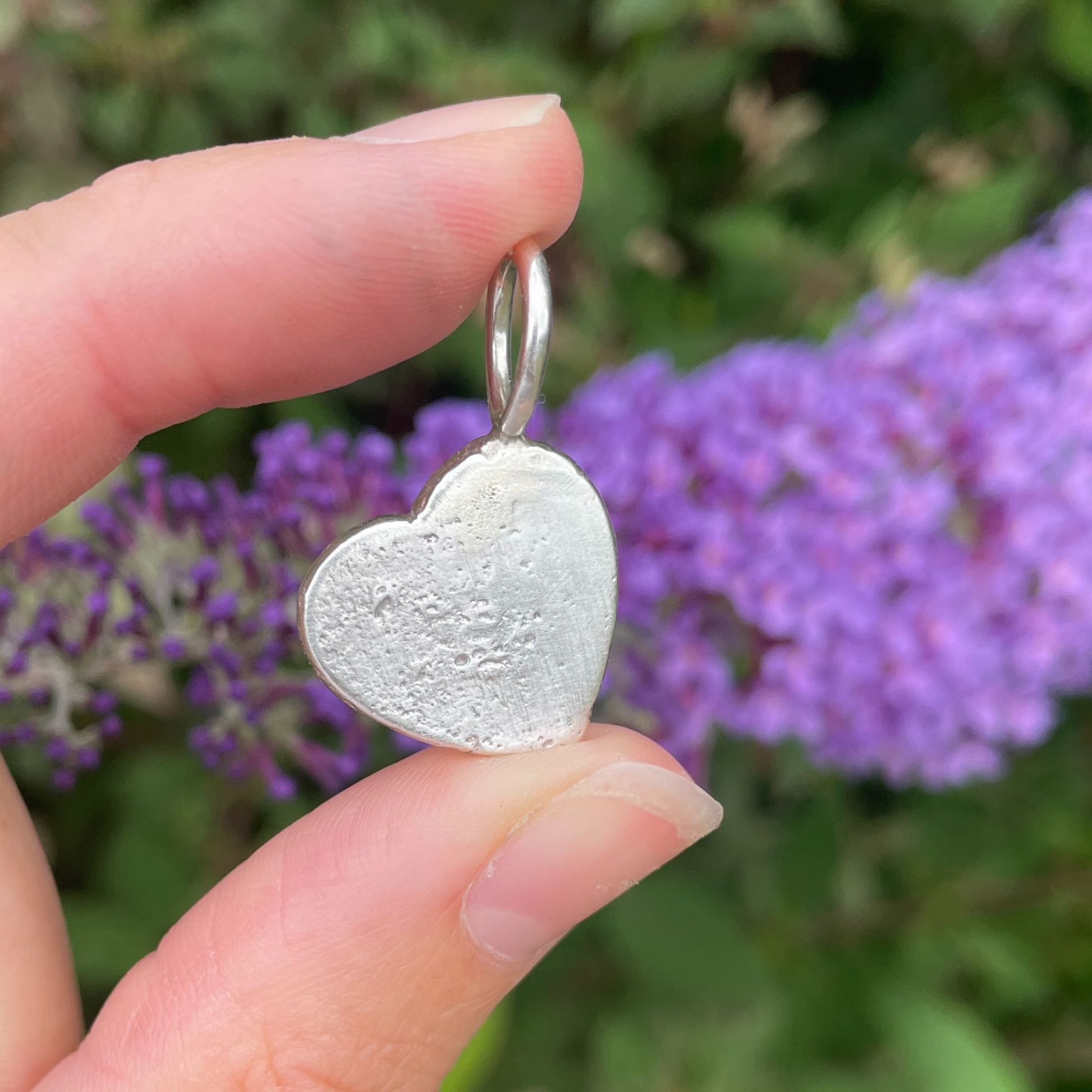 Each charm is individually handcrafted and sandcast, ensuring that no two pieces are the same. The heart design, cast in solid silver, is a timeless symbol of love and affection, making this charm a meaningful addition to any jewellery collection.